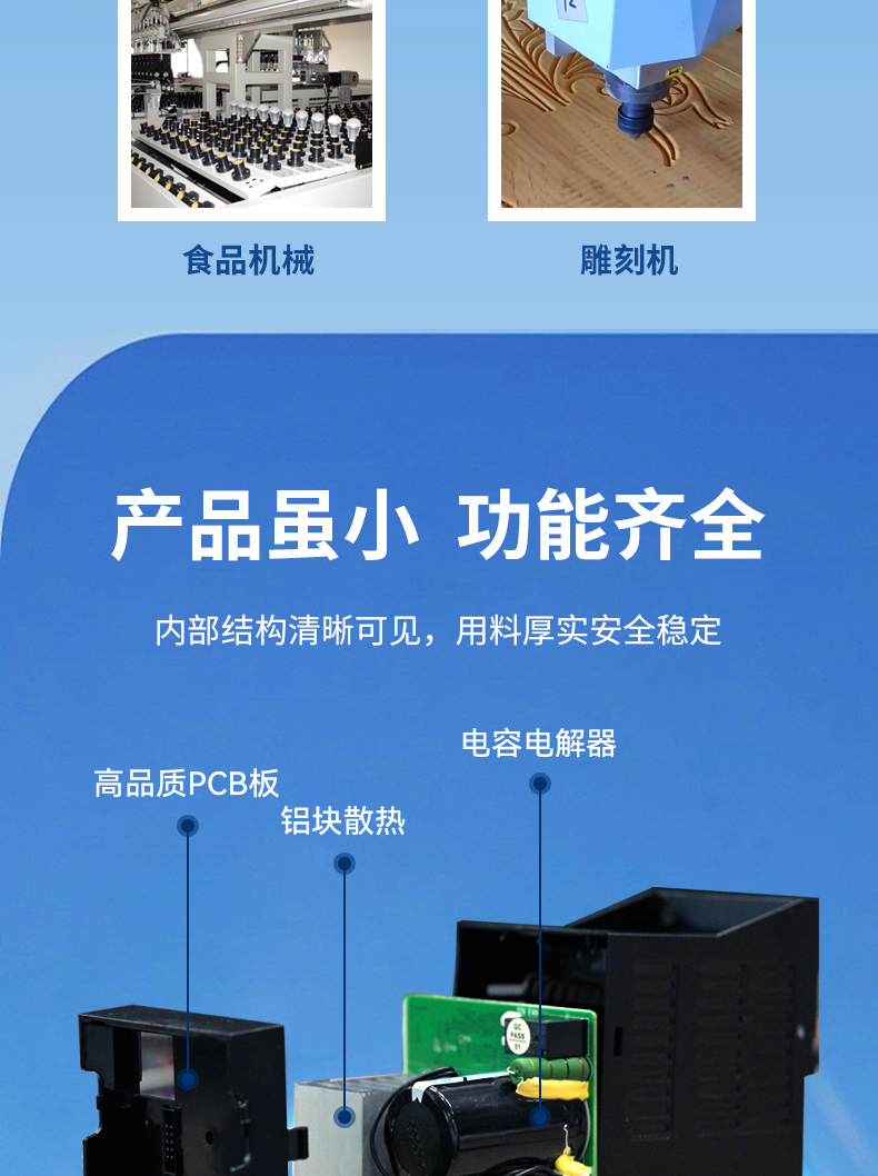 產品主要用于風機,流水線,食品機械,雕刻機等設備
