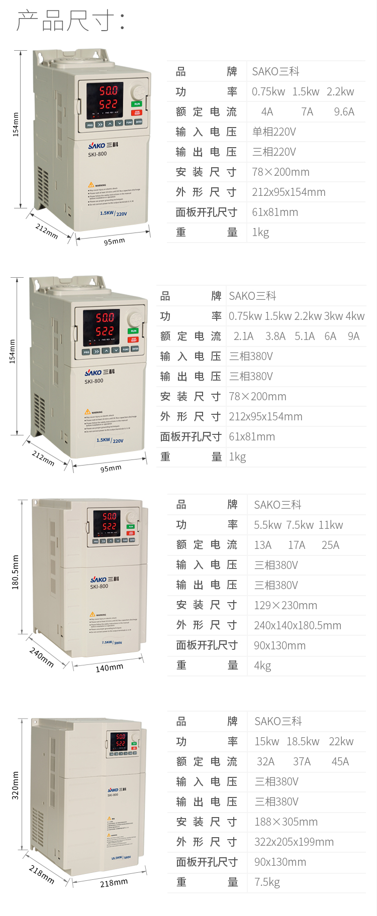 | 產品型號 | SKI800A5D5G-4 | SKI800A7D5G-4 | SKI800A11D0G-4 |
