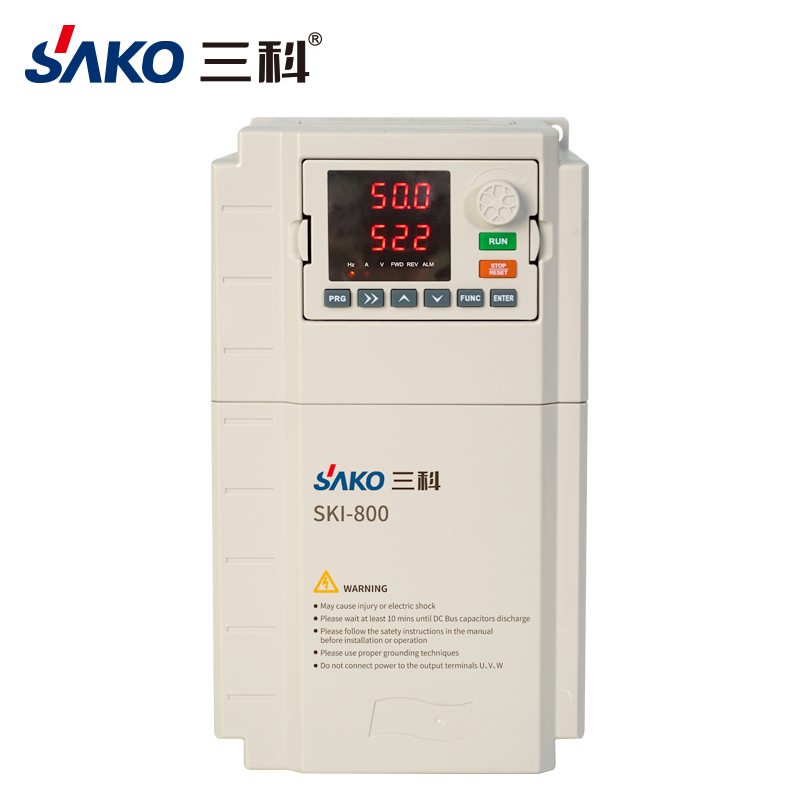 采用一臺變頻器SKI800系列產(chǎn)品15KW的變頻器(配制動電阻)實時控制兩部5.5KW主軸軸承電機,輔助以omron的光電傳感器、施邁賽的安全性拉線開關(guān)、法國P+K限位開關(guān)等檢驗元器件,操縱整機的啟動、關(guān)機、警報及滿紗、落紗等工作中。