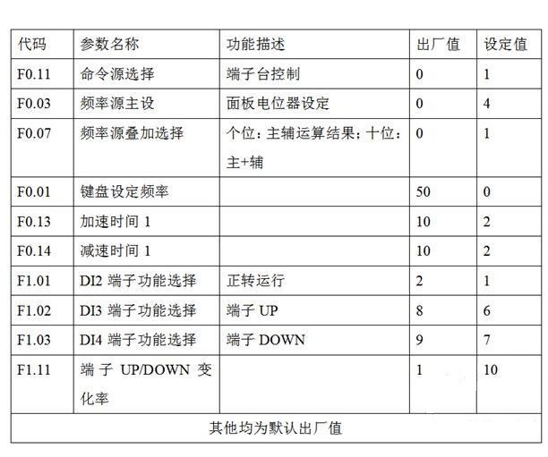通過SKI800變頻器的頻率疊加功能和DOWN功能,實現(xiàn)了牽引電機在一個初始設定的頻率基礎上進行加減速微調(diào),同時端子UP/DOWN變化率參數(shù)的設置很方便的對加減速靈敏度進行控制,現(xiàn)場使用效果很好。