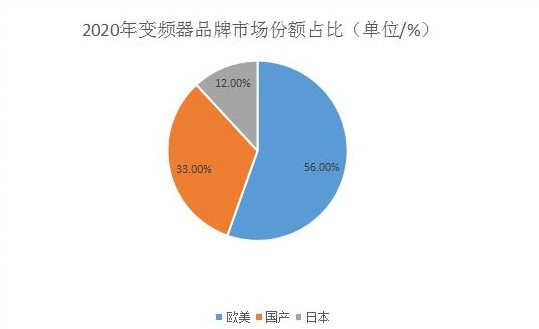 近年來,進(jìn)口品牌替代的進(jìn)程不斷推進(jìn),國(guó)產(chǎn)變頻器品牌逐漸占據(jù)日本品牌的市場(chǎng)份額。2017年至2020年,日系品牌的市場(chǎng)份額逐年下降,國(guó)產(chǎn)品牌上升并保持在33%左右,而歐美品牌仍然占據(jù)了較大的市場(chǎng)份額。2020年歐美品牌在市場(chǎng)中份額為56%,國(guó)產(chǎn)品牌所占的份額為33%,日系品牌所占市場(chǎng)份額緊隨其后。