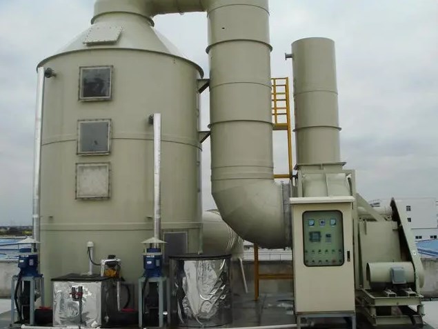 在工業(yè)廢氣處理中,酸霧廢氣通過風(fēng)管引入凈化塔,經(jīng)過填料層后,與氫氧化鈉吸收液進行氣液兩相全接觸吸收中和反應(yīng)。凈化后的酸霧廢氣經(jīng)除霧器脫水除霧后,由風(fēng)機排入大氣。吸收液由塔底水泵加壓,塔頂向下噴淋,最后返回塔底循環(huán)使用。