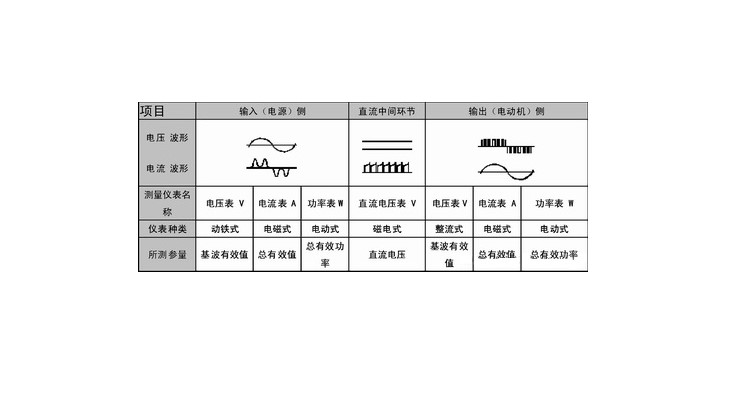 對于變頻器發(fā)生缺相故障時,可以從以下幾方面進(jìn)行檢查:首先,通過電壓表或鉗型表來判斷變頻器輸入輸出是否正常。主回路電氣測量的說明如表1所示。