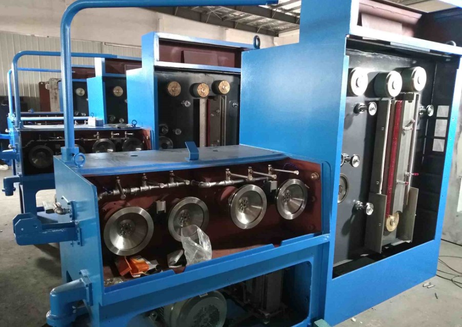 2、點(diǎn)動(dòng)穿模時(shí)操作流利。完成整機(jī)啟動(dòng)前,必需經(jīng)過手工將原資料前端打磨并逐級(jí)經(jīng)過模具。由于穿模時(shí)需求頻繁點(diǎn)動(dòng),所以拉伸電機(jī)處于靜止、加速、低速運(yùn)轉(zhuǎn)、減速、靜止等狀態(tài)下重復(fù)切換。我們VFD在啟動(dòng)和低速運(yùn)轉(zhuǎn)時(shí)力矩大且運(yùn)轉(zhuǎn)速度穩(wěn)定,而且在減速停機(jī)時(shí)電機(jī)沒有反轉(zhuǎn)。卷獨(dú)自動(dòng)計(jì)算功用。雙變頻拉絲機(jī)設(shè)備可選擇依據(jù)線速度計(jì)算的方式。而關(guān)于資料厚度固定,卷徑遞增速率穩(wěn)定的資料,也能夠選擇經(jīng)過資料厚度計(jì)算。經(jīng)過卷徑的變化調(diào)整前饋值,使整個(gè)收卷過程取得精確的預(yù)調(diào)整,從而保證拉絲機(jī)整個(gè)收線過程的穩(wěn)定。