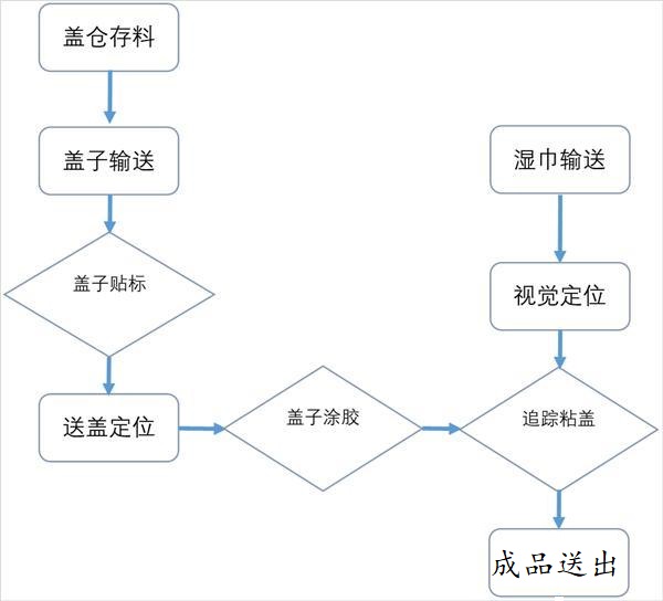圖3全自動(dòng)濕巾貼蓋機(jī)粘蓋工藝流程圖