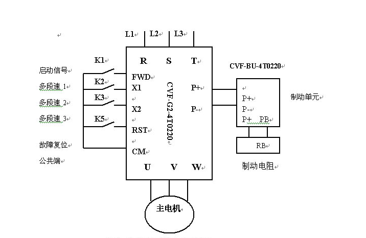 頻率設(shè)置由AI2端子模擬電壓,輸入范圍:DC 0~10V相關(guān)設(shè)定見功能碼F6. 06~F6.11定義。